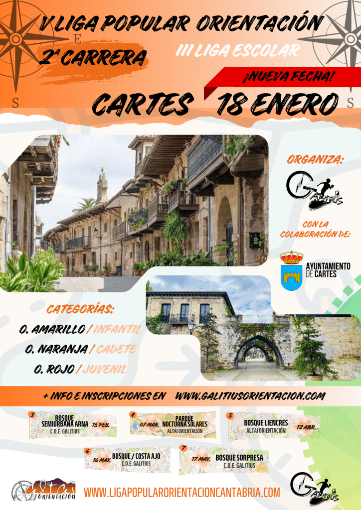 El próximo 18 de Enero de 2026, comenzaremos el año en Cartes, con la 2ª prueba de la V Liga Popular de Orientación de Cantabria.