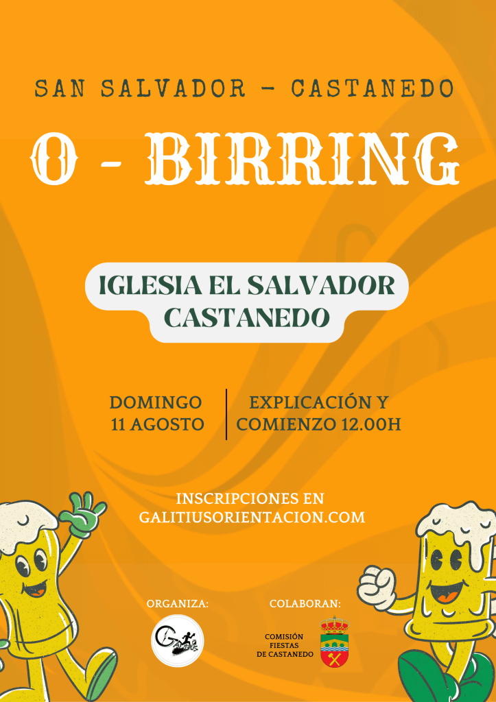 El próximo domingo 11 de Agosto os planteamos un nuevo O-Birring. Esta modalidad es perfecta para seguir con la diversión del programa de fiestas, ya que combina lo mejor de la orientación con el sabor más rico de la cerveza (o la coca cola para los más peques).